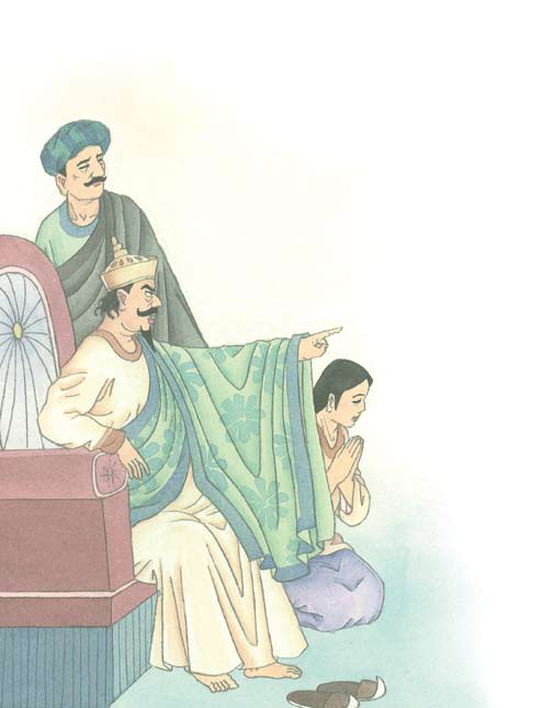 比丘说:「如来有教,其有众生脚着履屐者,不与说法。」国王自恃豪尊势力,大发脾气,但他不得已脱掉鞋子,然后对着比丘说:「你赶快说法,使我高兴;违我本意者,就把你斩首示众。」