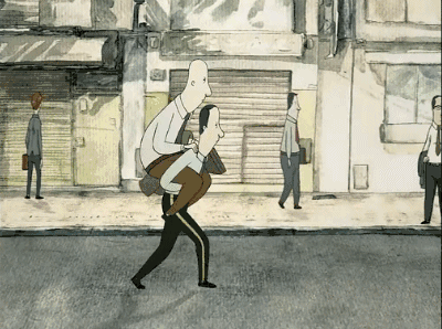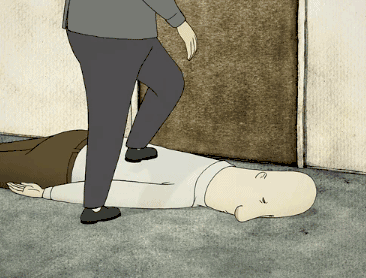 我们会猜想这个主人公到底是怎样一个优越的人,但是到影片结尾处,当主人公自己也仅仅是普普通通的一员时,我们才明白,短片中的每个人都是社会中的零件,包括那个在主人公的身上踏过并擦擦尘土、不带感情推门而入的人,他一定也是……
