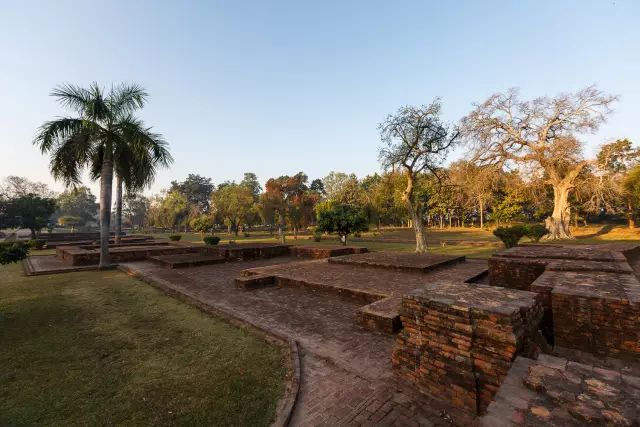 离开了王舍城,朝圣团来到了释迦牟尼佛生活过的迦毗罗卫国,这里出土了佛陀肩胛骨舍利,现供奉于德里博物馆。这里是佛陀目睹生老病死,生起强烈出离心与菩提心的圣地,雨后的一汪水池,仿佛看到蓝毗尼园当年时光。