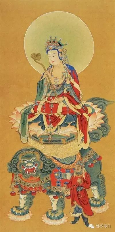 善财童子五十三参里参善知识,一路上善知识经常会跟善财童子说:你能够出来参学都是因为文殊菩萨加持!所以文殊菩萨在我们众生面前同时也是以善知识的形象来启发我们的菩提心,启发我们的大乘心,启发我们空性的般若正见,这是文殊菩萨不共的。