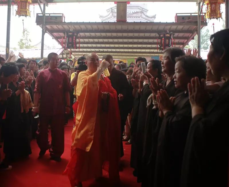 传喜法师主法蒙山施食超荐法会,愿此中原腹地的累朝帝主、历代侯王,各贤良才俊,法界五道,十类孤魂,悉赶赴道场,听法师讲法,皈依受戒,具足正见,承三宝力,仗秘密言,脱离苦趣,成就菩提。